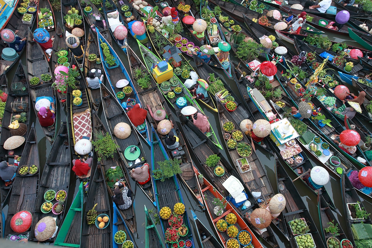 Pedagang di Pasar Terapung Lok Baitan juga enggak cuma berhenti di satu tempat lho, mereka terus bergerak mengikuti arus sungai. Pokoknya, pas banget buat jadi spot foto instagenic!