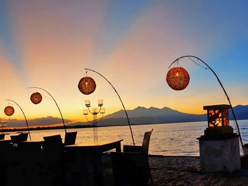 The three Gili islands are known around the world as a little piece of heaven. Situated off the north-west coast of Lombok, these three beautiful islands have become popular with tourists and locals in need of a break from their busy lives. These are the islands of Gili Trawangan, Gili Meno and Gili Air. The environment is so rich in nature, that walking around these islands gives you a sense of serenity that is not easily acquired in the modern world. The islands of Gili are home to amazing restaurants that not only serve fantastic food but also offer you a view that perfectly compliments the experience of beachfront dining.